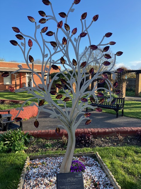 Contributions from staff and friends allowed the purchase of a beautiful oak chair; Dreamdrops children’s charity presented an inscribed plaque in the shape of a teardrop which is the charity’s emblem and a leaf with Jill’s name was attached to the memorial tree in the staff garden at the hospital.